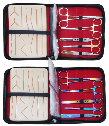 Deluxe Suture Kit stand‑alone tools with superior durability and aesthetic appeal. Perfect for advanced practice or replacing worn tools in your kit. Limited Edition and limited inventory.