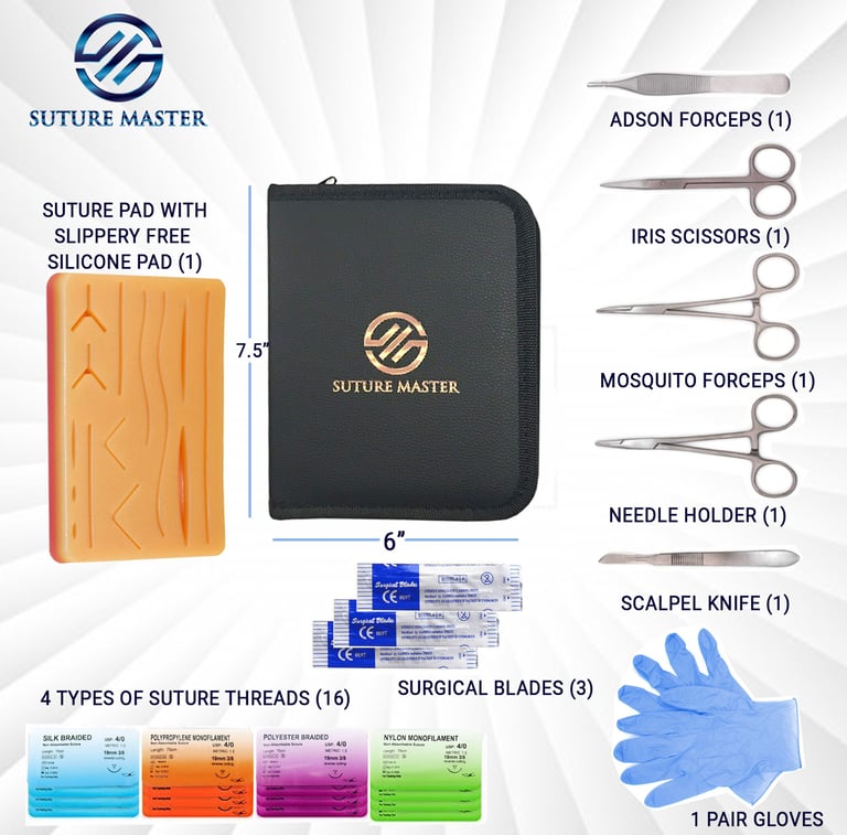 Important Notice: Suture Master™ kits and instruments are strictly for educational, training, and simulation purposes. They are not intended for clinical use on humans or animals. By reserving a kit, the user agrees these products are designed solely for instructional practice in a controlled, non-clinical environment. Suture Master™ assumes no liability for misuse. Professional mastery should always be performed under qualified medical guidance.